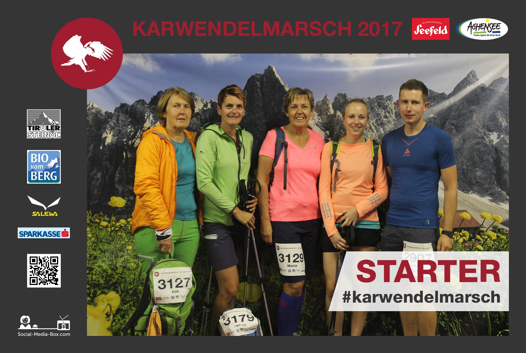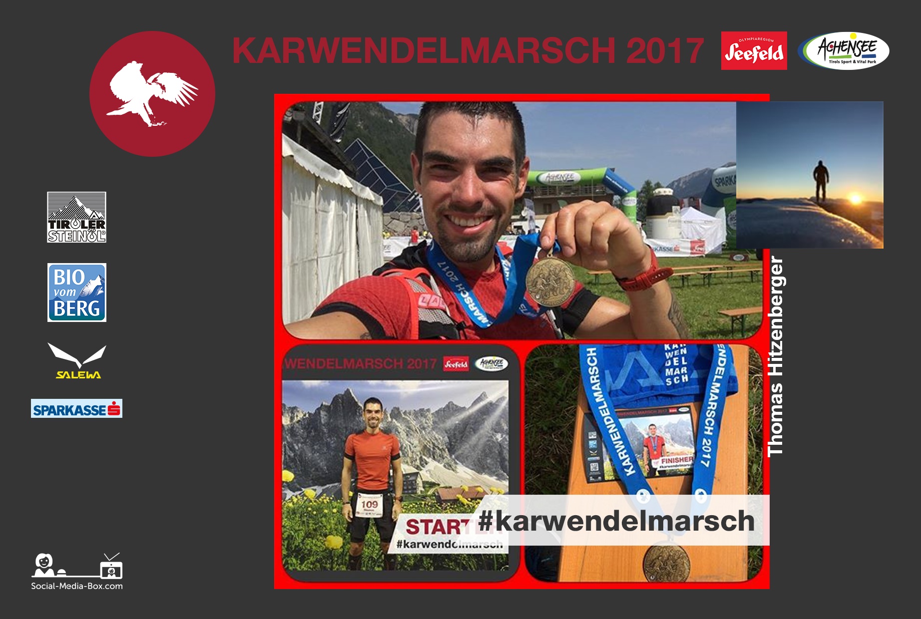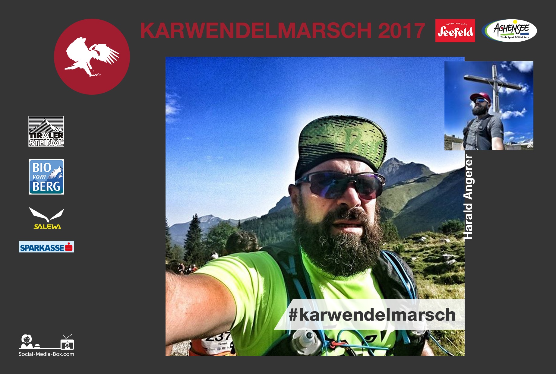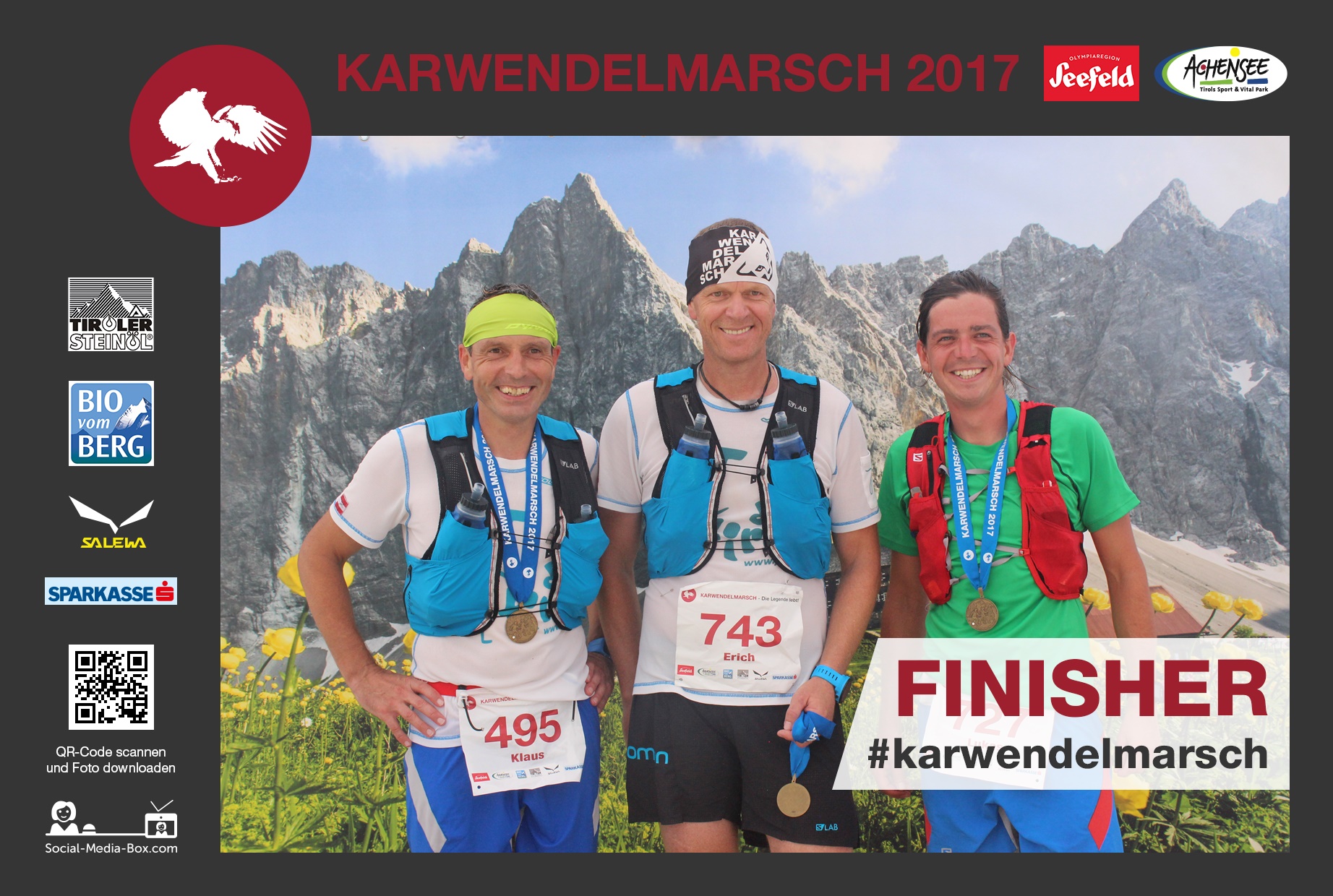 Tolle Veranstaltung mit super Organisation. Wie bereits im letzten Jahr durften wir mit der Social-Media-Box am Start in Scharnitz und im Ziel in Pertisau – Vorher/Nachher-Fotos von den motivierten Läufern machen. Auch auf Instagram wurde kräftig mit dem Hashtag #karwendelmarsch gepostet. Diese Fotos durften dann direkt im Ziel, ausgedruckt abgeholt werden. Wir freuen uns schon auf nächstes Jahr. 🙂